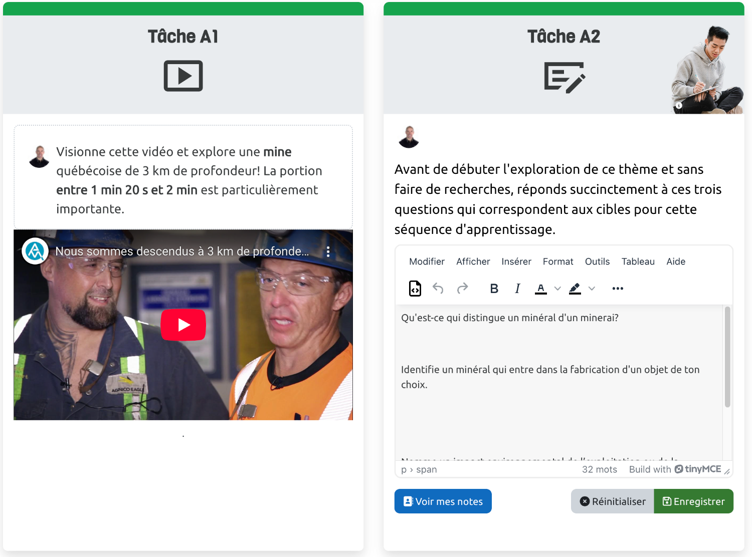 Exemple d'un cahier de traces intégré dans une page à la droite d'une vidéo L’intention de l’atelier est de vous permettre de vous approprier ce plugiciel pour Moodle et voir les nombreux contextes où son apport pédagogique fera LA différence. En gros, le cahier de traces permettra à vos apprenant(e)s de rédiger des notes (souvent réflexives) à des moments et à des endroits précis que vous pourrez cibler.